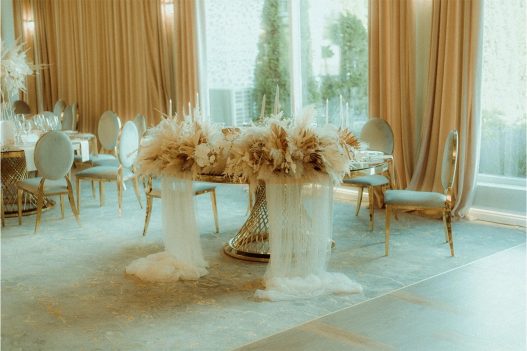 Harmony e pentru cuplurile care visează la eleganță clasică: 430 mp, până la 230 de invitați, decor sofisticat, candelabre strălucitoare și o atmosferă de ballroom veritabil. Euphoria are aceeași capacitate, dar o energie diferită – vibrantă, plină de viață, cu accente moderne și un aer de petrecere care nu se termină. Grace, în schimb, e salonul cozy, de tip boutique: 170–175 mp, până la 70 de invitați, cu mese și canapele rotunde, bar înalt și un vibe de cocktail bar de lux din centrul Londrei – perfect pentru nunți intime, dar foarte stilate.